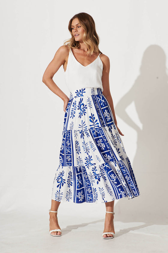 Wanderlust Maxi Skirt In Cobalt With White Print