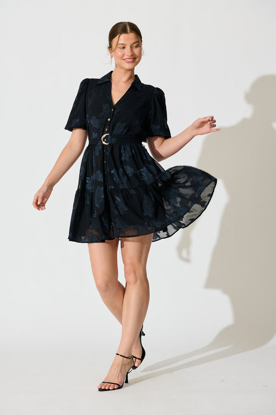 Whispered Grace Shirt Dress in Navy Burnout Chiffon