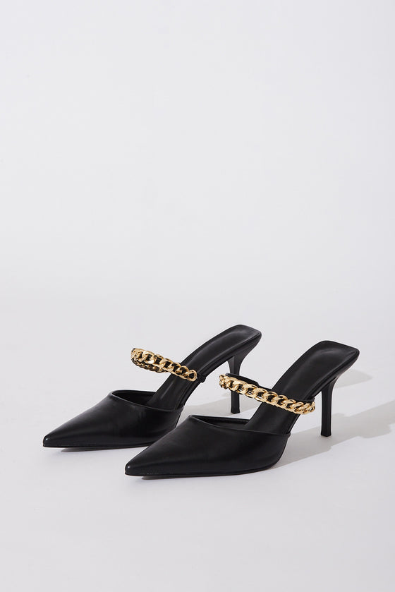 Winona Gold Chain Closed Toe Heels In Black