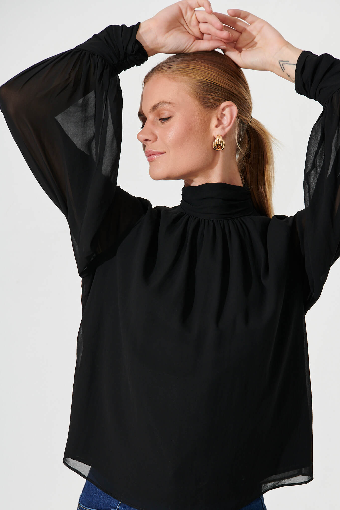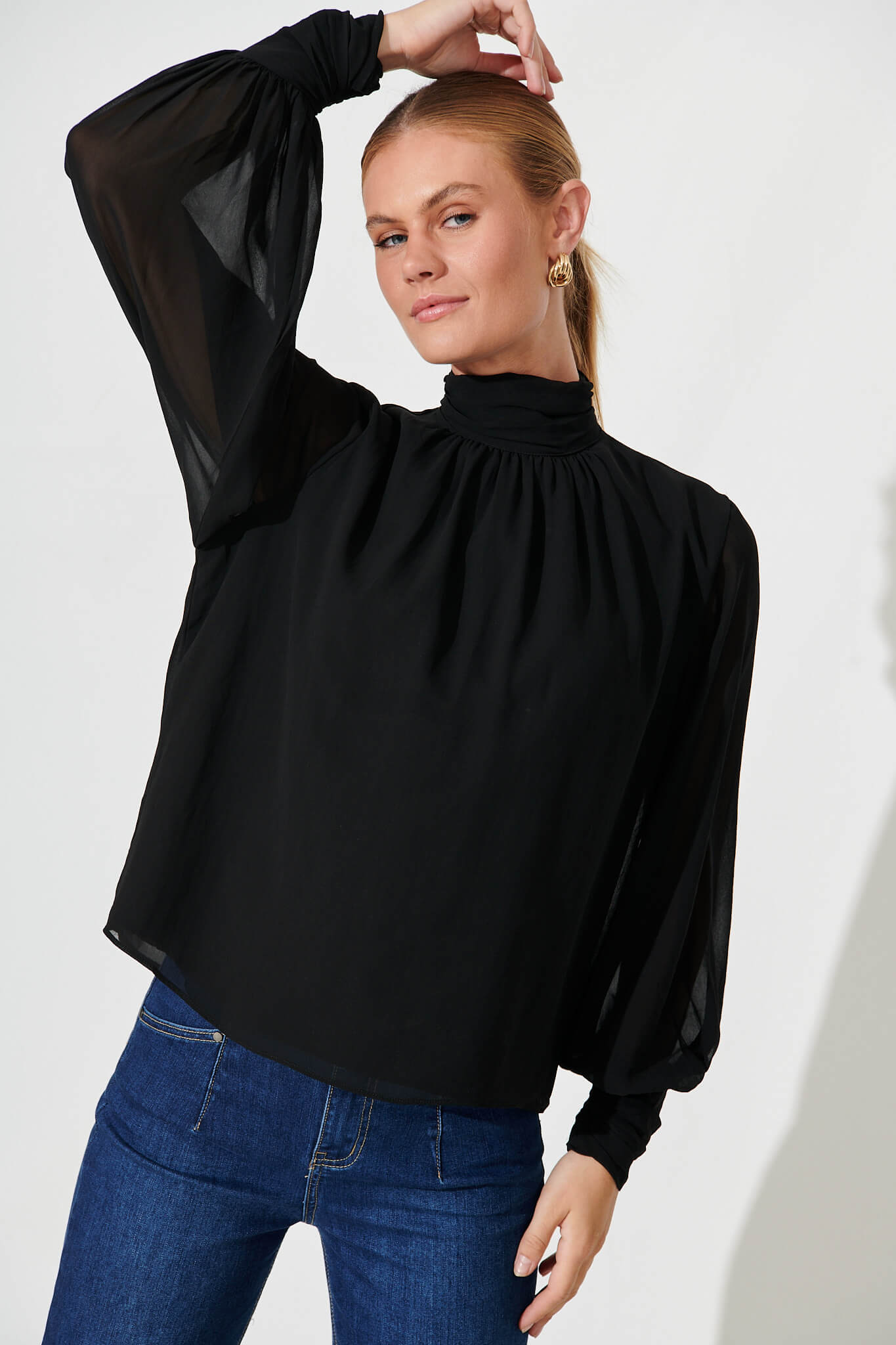 - Hi neck with gather detail