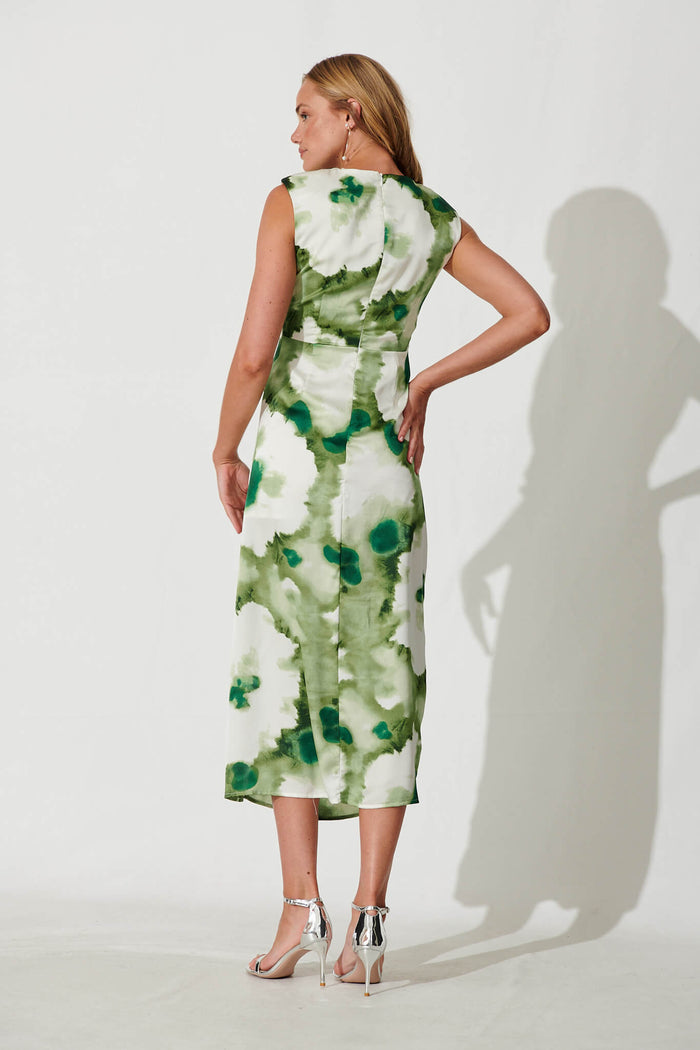 Wonderful World Maxi Dress In Cream With Green Watercolour Satin