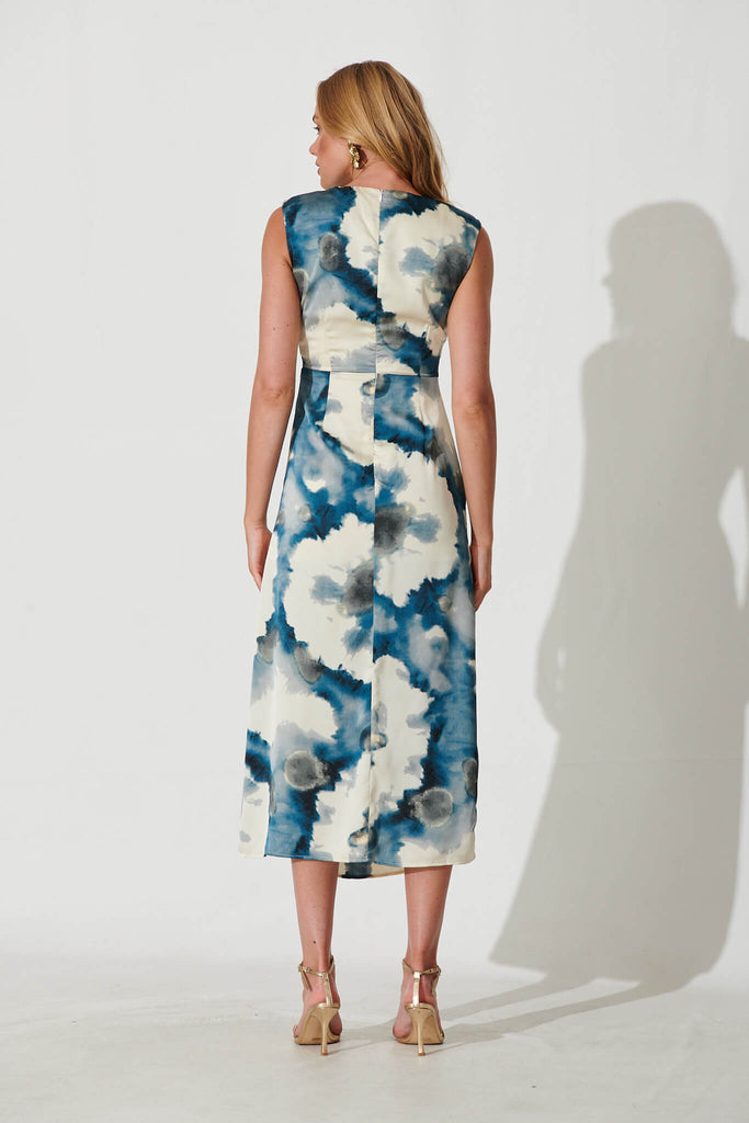 Wonderful World Maxi Dress In Cream With Navy Watercolour Satin