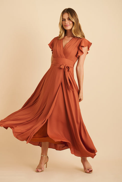 Wynter Maxi Dress in Rust Chiffon