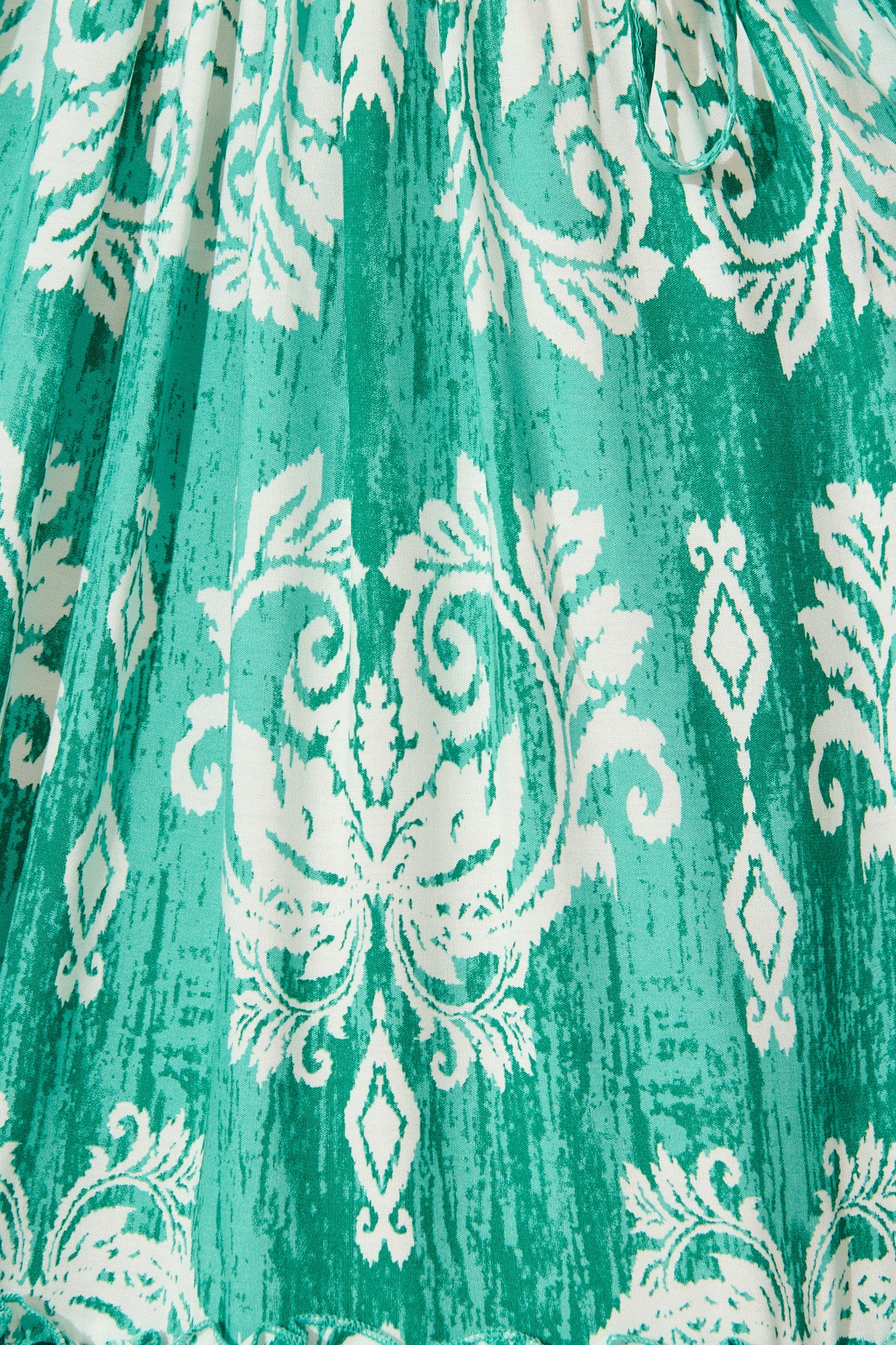 Made from breathable rayon, this unlined dress features a V neckline, plastic button front with elasticised loops, and a functional drawstring waist to flatter your shape. The bold green base adds a fresh feel, while the print may vary slightly with each piece.