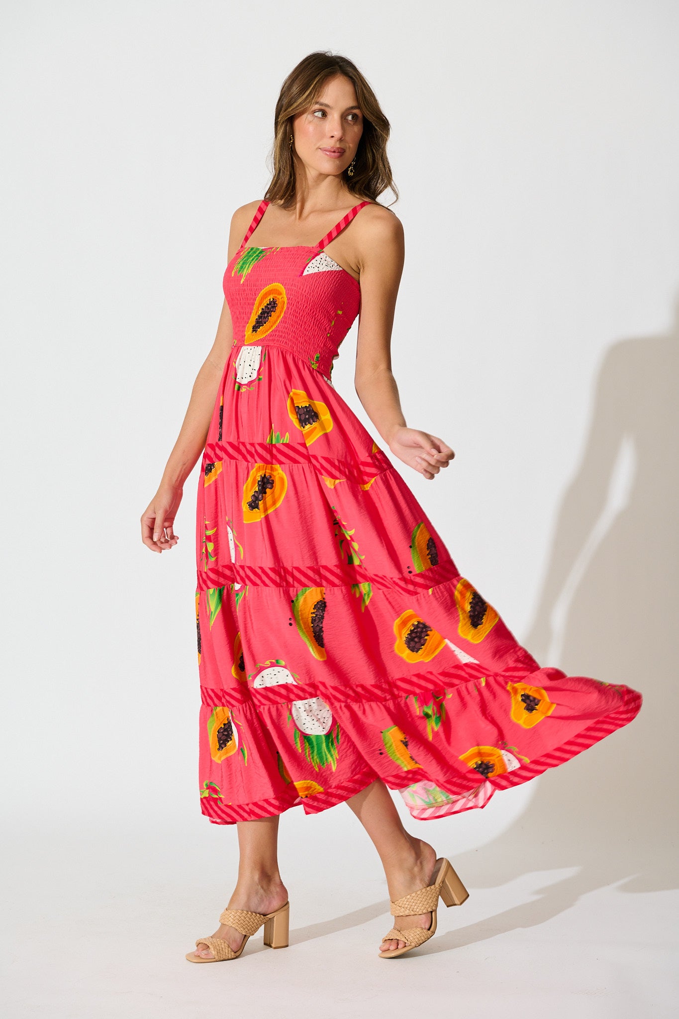 Bold, breezy and ready for summer, the Zimi Maxi Sundress in Red Multi Print brings sunshine energy to your wardrobe. With its tiered skirt, shirred bodice and vibrant print, this is your go-to dress for markets, beachside holidays or warm nights out.