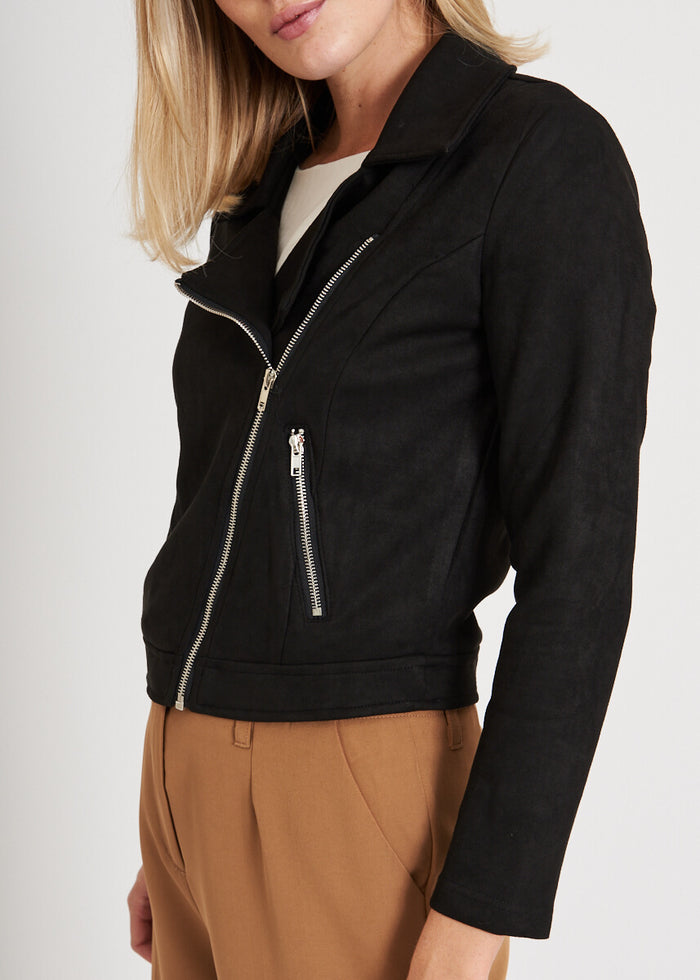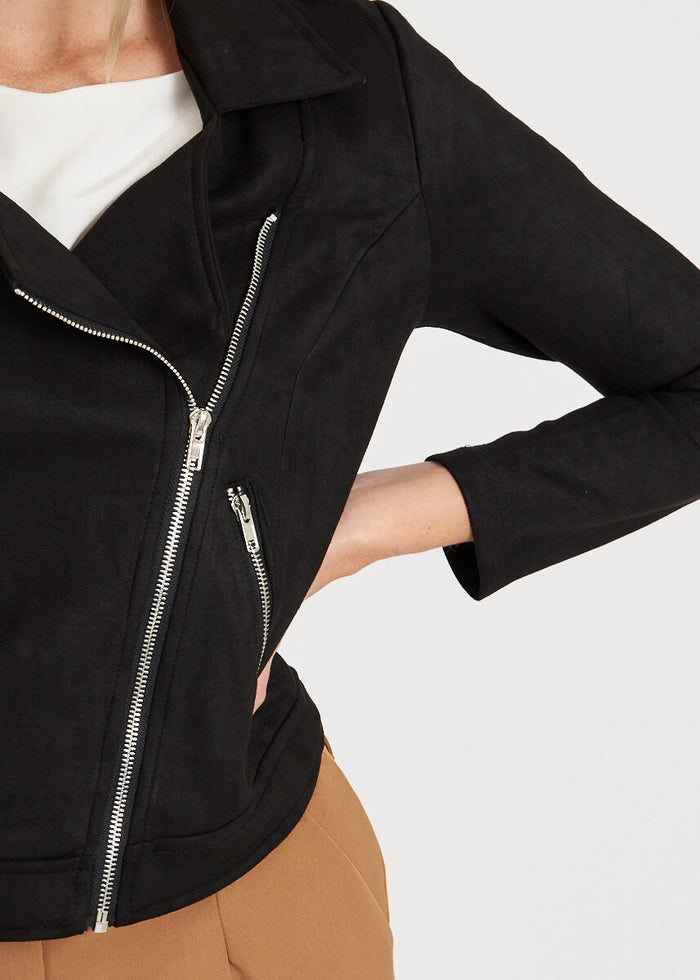 We can't get enough of our Zodiac suedette jacket! If you're looking for a piece you'll be wearing all season long, then this is the one! Keep the look stylish yet comfortable, & wear with high-waisted jeans & heeled boots!