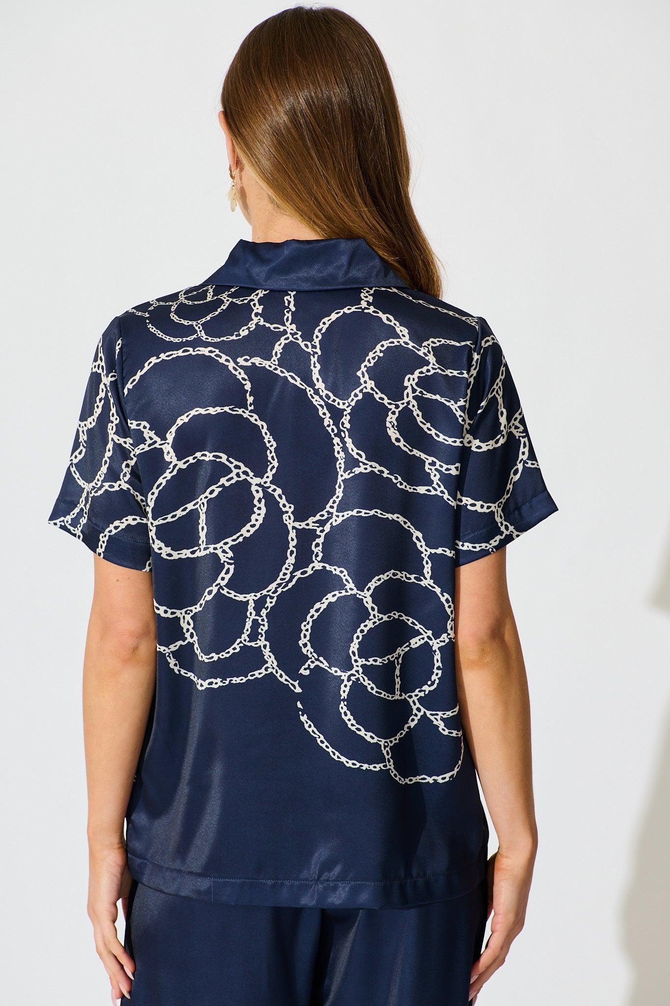 Elevate your everyday with the Zoi Shirt in Navy Floral Satin. With its relaxed fit, smooth feel and effortless drape, this piece brings easy elegance to workdays, dinners and everything in between.